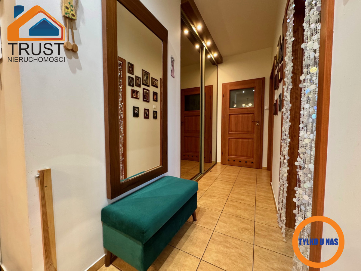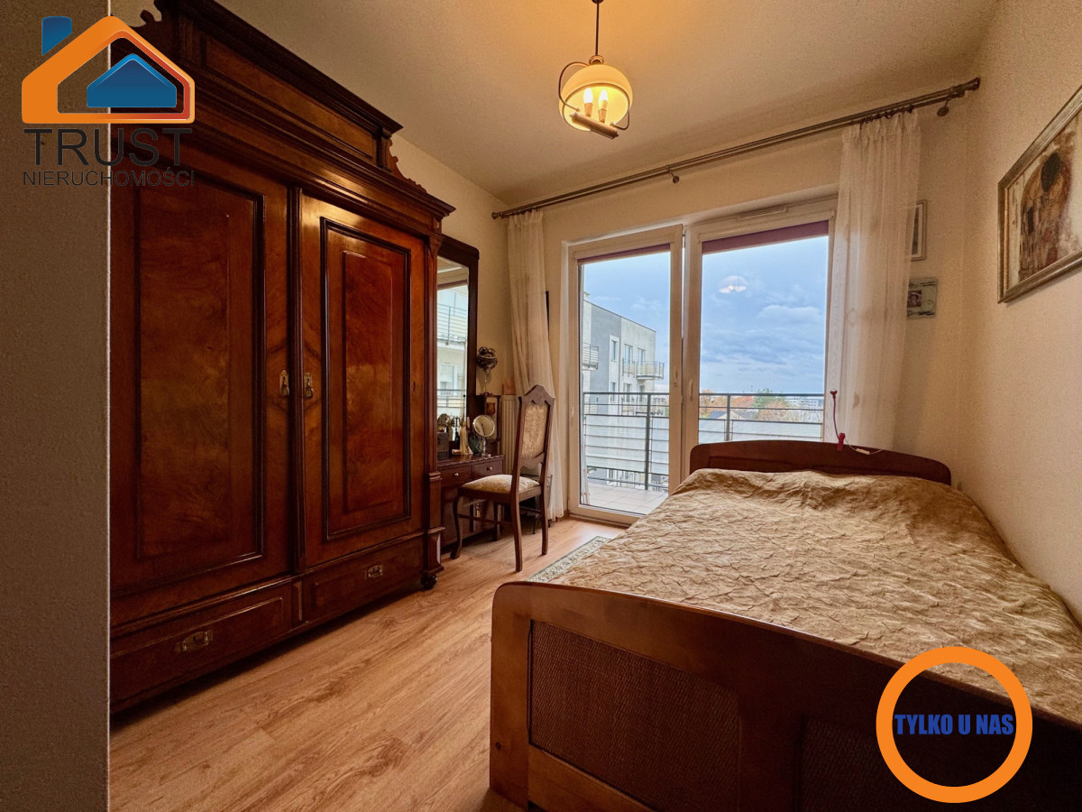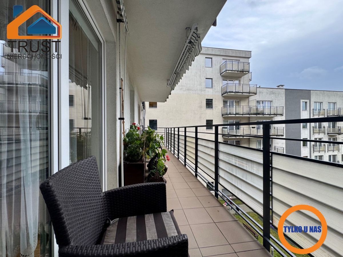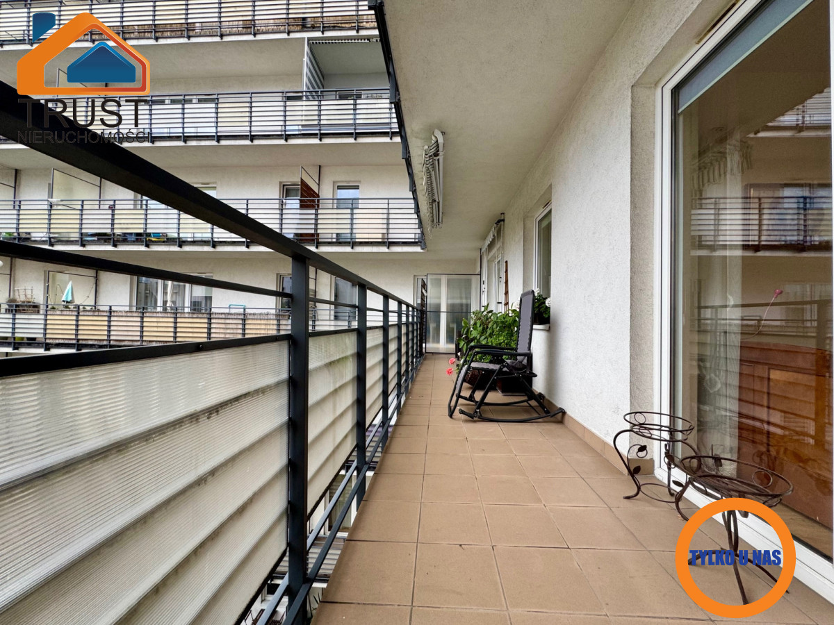 Mieszkanie posiada funkcjonalny rozkład pomieszczeń z oddzielną, przestronną kuchnią i wyjściem na ogromny taras zarówno z salonu jak i sypialni. Stan techniczny mieszkania pozwala na wprowadzenie się do niego bez ponoszenia dodatkowych nakładów finansowych. Południowo-zachodnia ekspozycja okien zapewnia bardzo dobre doświetlenie lokalu przez cały dzień.